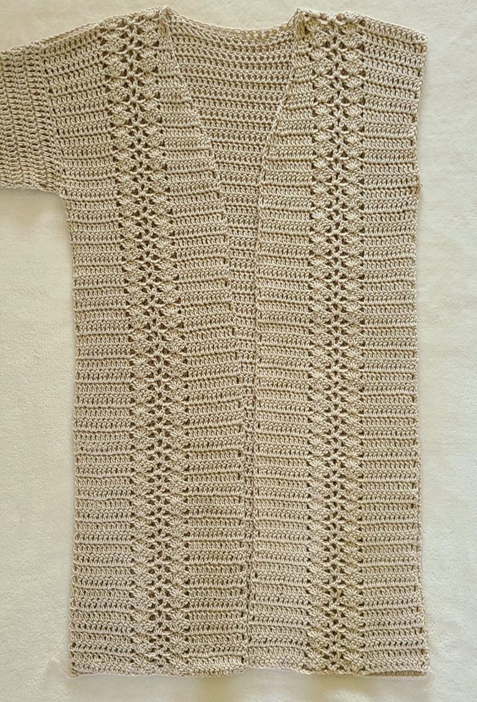 When complete, the cardigan is blocked – I used steam blocking. The listed measurements are based on standards used by the Craft Yarn Council – and are before blocking. Measurements may change based on hook size, yarn and gauge.