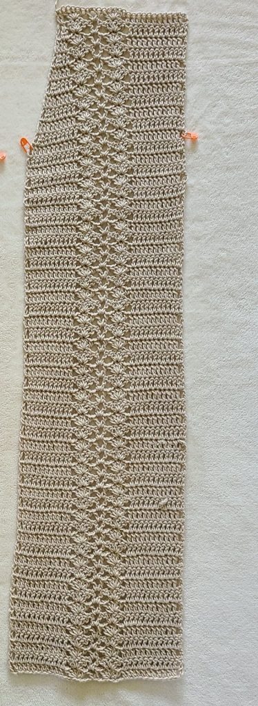 What is the width of the back panel after blocking. I’m using the same yarn as you and crochet hook and I’m measuring 15.5” without stretching it. I’ve only done the 1st row so far. Not sure if I need more chains to make it a width of 18” Or maybe go up to 4mm hook? I feel like I’m not keeping the tension too tight🤔 What are the widths of the front panels and the width and length of the sleeves in inches? This would be for the medium size. Thanks for your help, I’m a somewhat newbie in garment crocheting. If I am using an even lighter weight yarn could I fit it to the measured inches of each piece or is there an easier way to figure out how many chains you start with?