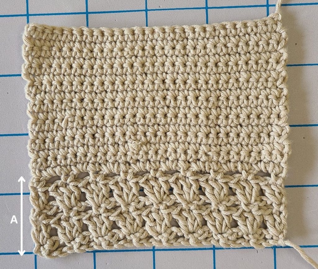 4×4 in (10 cm x 10cm) – 18 sts x 24 rows